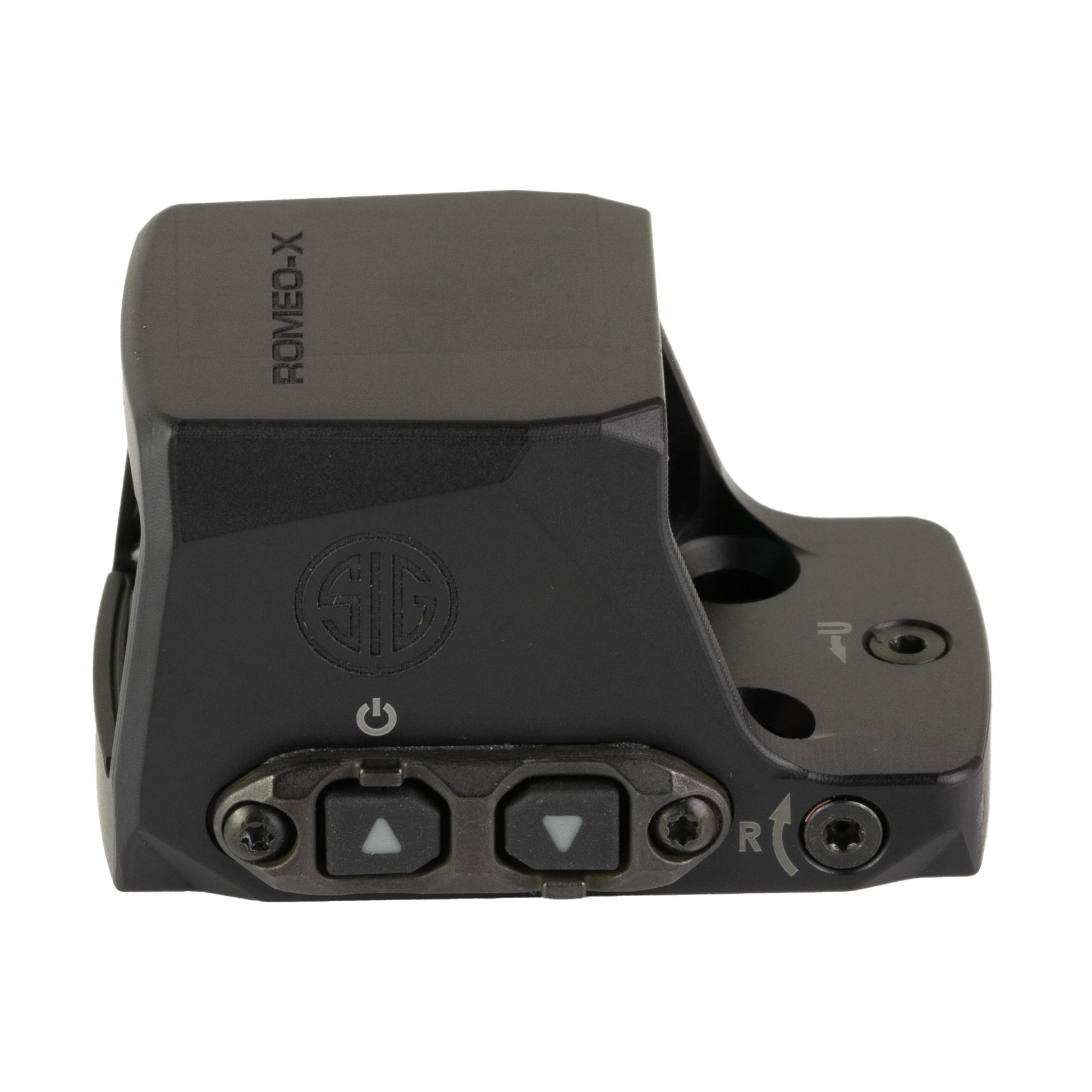 Rugged dependability meets streamlined design with the ROMEO-X Enclosed pistol red dot from SIG SAUER. Leveraging SIG's experience developing durable red-dot technologies trusted by militaries around the world, the ROMEO-X Enclosed optimizes strength and reliability for the concealed environment. Featuring a rugged 7075 aluminum housing with a fully enclosed, sealed, and Argon-purged optical system, the ROMEO-X Enclosed creates a rock-solid, distortion free, aiming solution for the most demanding shooters and circumstances. Equipped with a side-mounted battery compartment and SIG SAUER's patent-pending beryllium copper flexure system, the ROMEO-X Enclosed deck height is the lowest in the industry, allowing for effortless co-witness with standard height irons and is available in both PRO and COMPACT standardized footprints. Building up SIG SAUER's DNA of trusted military innovation, the ROMEO-X Enclosed delivers streamlined dependability without compromise. ROMEO-X Enclosed. Where X marks the dot.