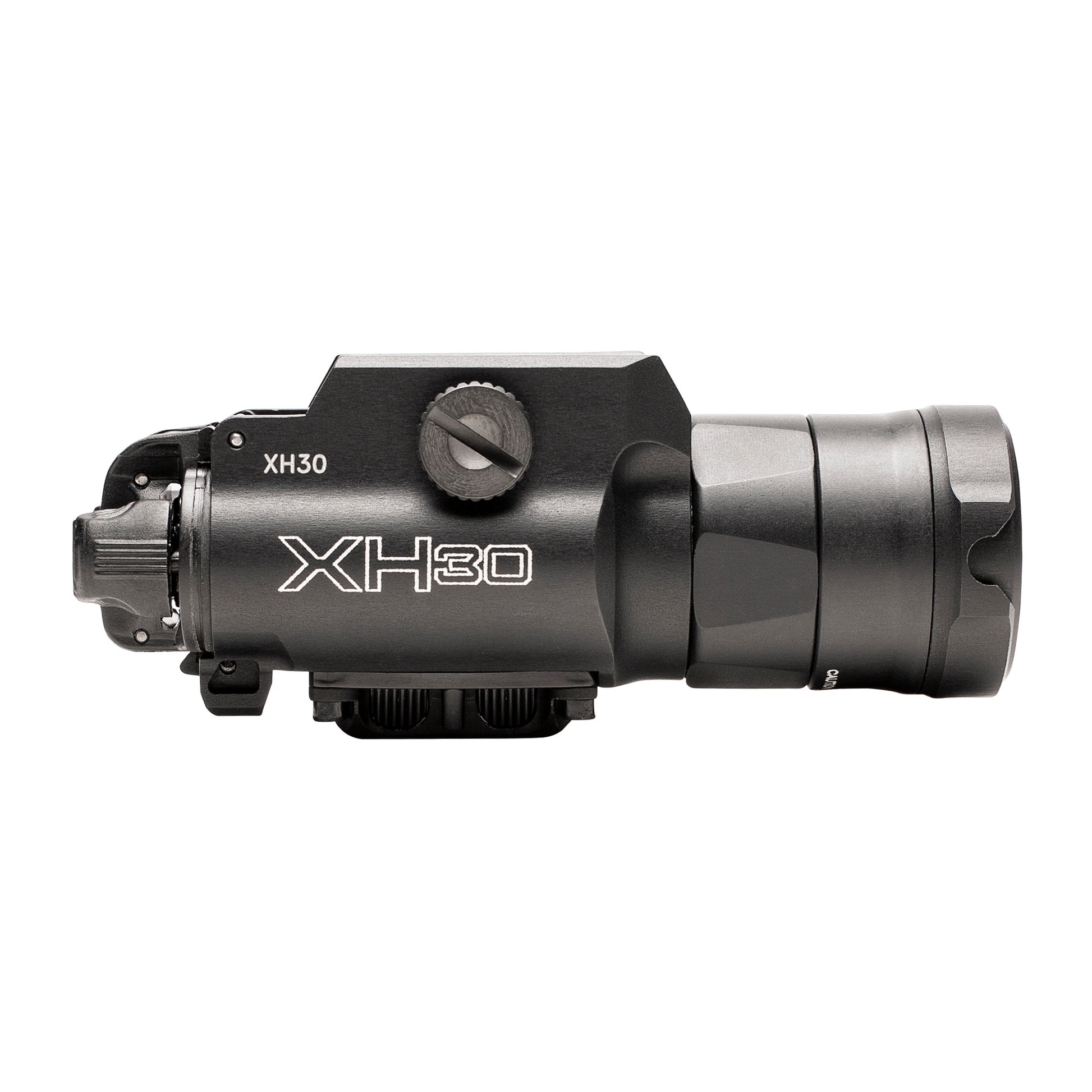 This powerful and versatile XH30 Weapon Light was created to interface with SureFire's revolutionary MASTERFIRE(TM) Rapid Deploy Holster. It features a unique bezel with cam slots, and pin slots on both sides of the body, which serve to lock the light into the holster and secure the weapon at an advantageous angle for quick deployment. As a tactical weapon-mounted light, the XH30 is remarkable on its own. It features a recoil-proof LED paired with a Total Internal Reflection (TIR) lens which creates a far-reaching, high-intensity beam with ample surrounding light. Constructed of lightweight but strong aerospace-aluminum body with a Mil-Spec hard anodized finish for superior toughness - and then O-ring and gasket sealed for weatherproofing - this tough-as-nails Weapon Light never needs to be babied. The XH30 includes two mode selector switches. One for toggling between 1,000 blinding lumens of light to gain a superior advantage in the dark and 300 potent lumens when less light is needed. The second switch toggles between continuous light operation and a disorienting strobe mode. Activating the XH30 is achieved via one-finger, ambidextrous switching located at the rear of body. Optional DG grip switches (for pistols), which allow for surgical activation without altering your grip on the weapon at all, are also available. And the versatile XH30 can be easily and securely attached to any pistol or long gun equipped with a Universal or Picatinny rail via its Rail-Lock(R) system.