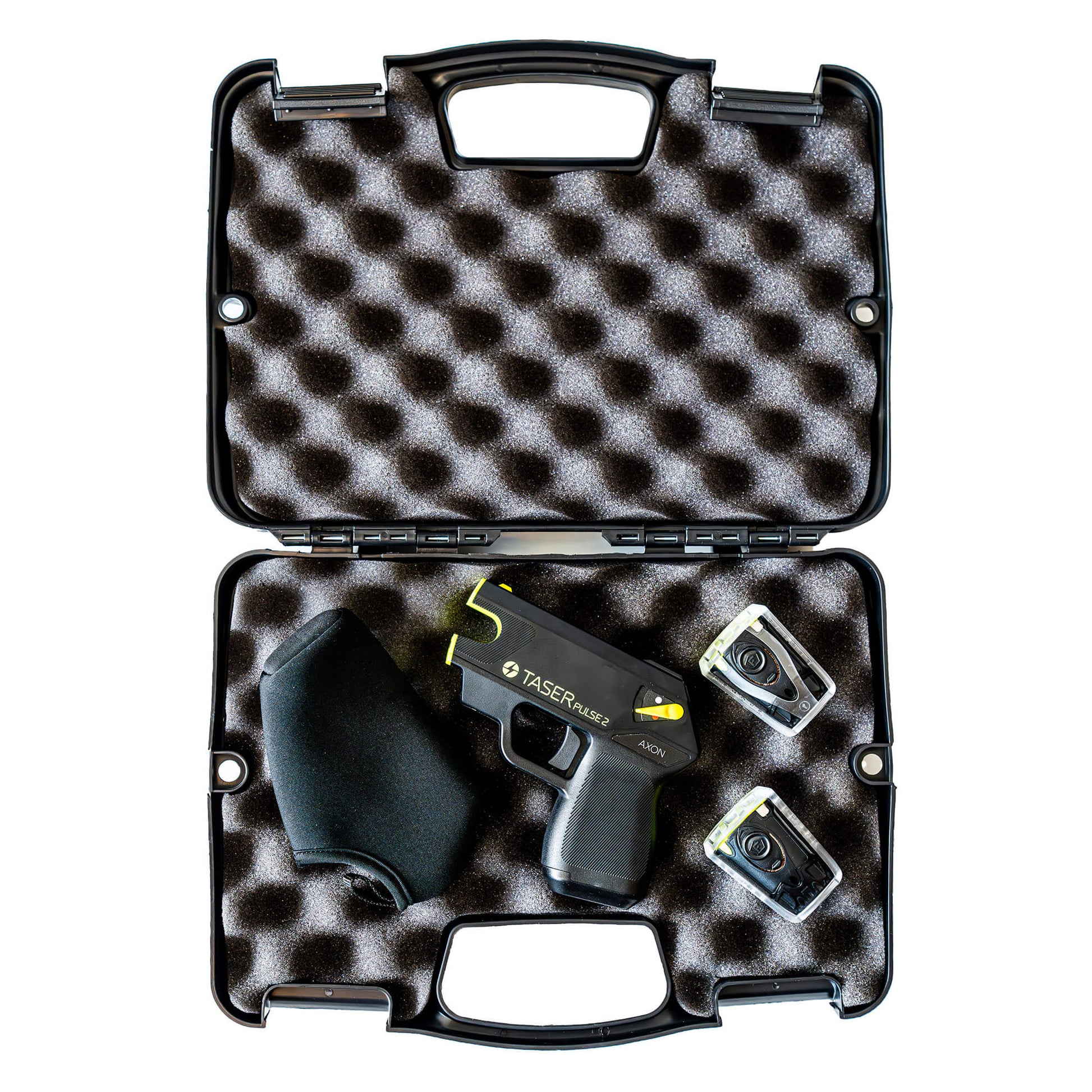 TASER, Pulse 2 Kit, Black and Yellow, Includes 2 Live Cartridges, Lithium Battery, Conductive Practice Target, and Soft Carry Sleeve